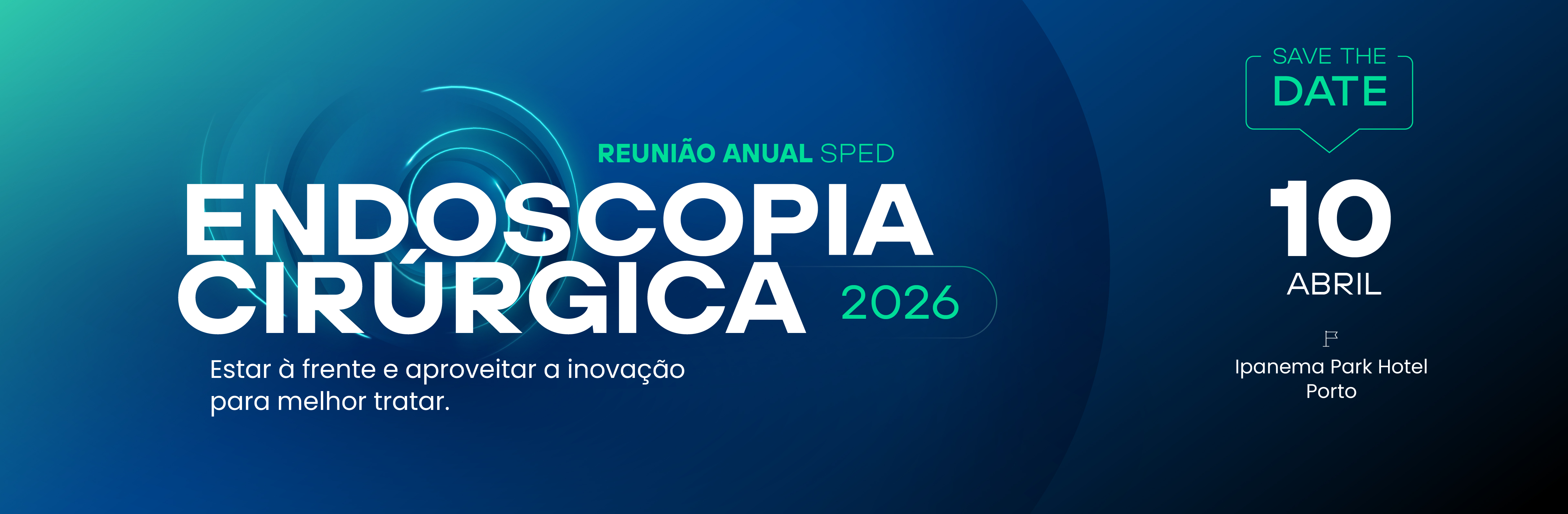 Reunião Anual SPED 2026: Endoscopia cirúrgica - Estar à frente e aproveitar a inovação para melhor tratar Destaques SAVE THE DATE 10 abril | Hotel Ipanema Park , Porto Consulte o programa provisório e faça a sua inscrição. Facebook X