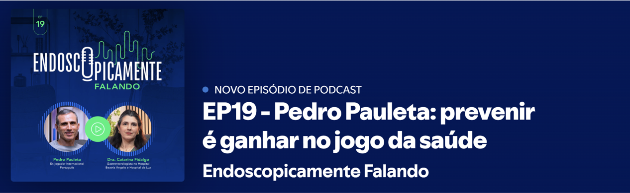 Veja aqui o novo episódio do PODCAST da SPED "ENDOSCOPICAMENTE FALANDO", com a presença do futebolista Pedro Pauleta, subordinado ao tema "Prevenir é ganhar no jogo da saúde".