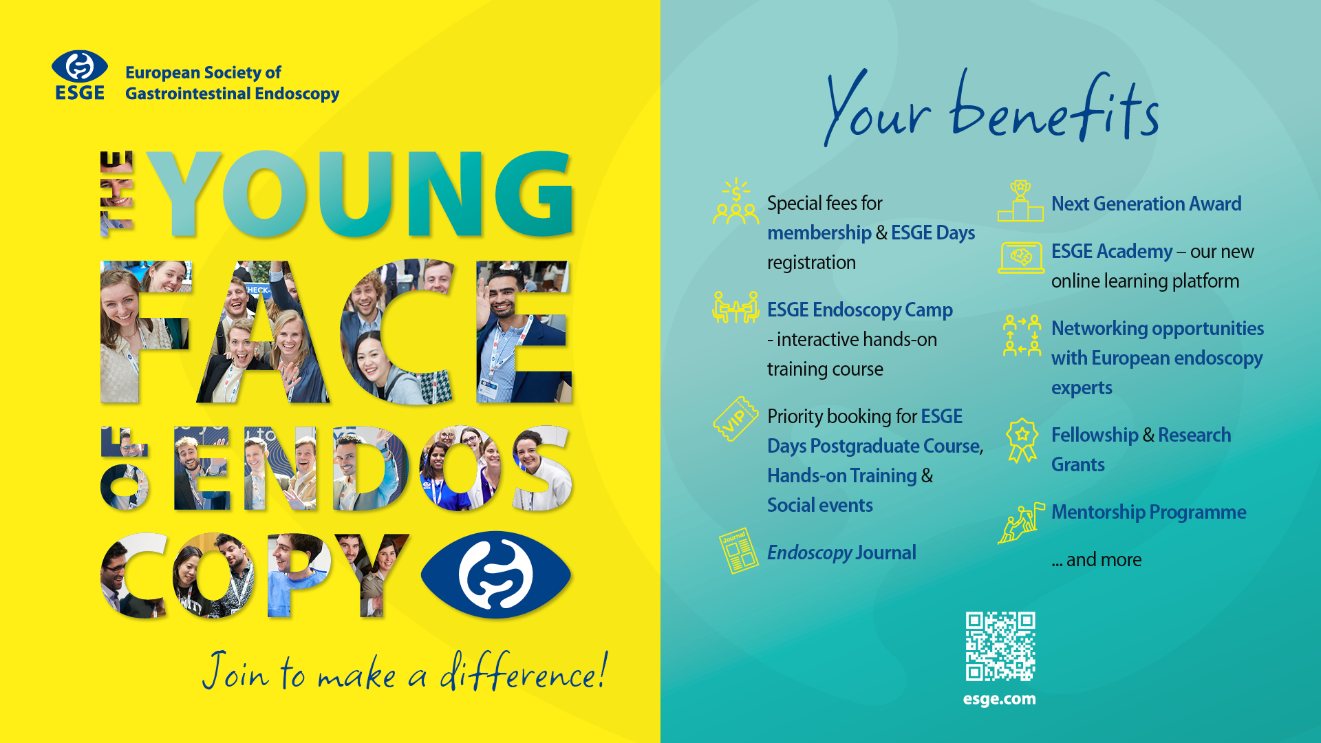 Benefícios de ser Young ESGE Membership - Conheça os benefícios aqui.